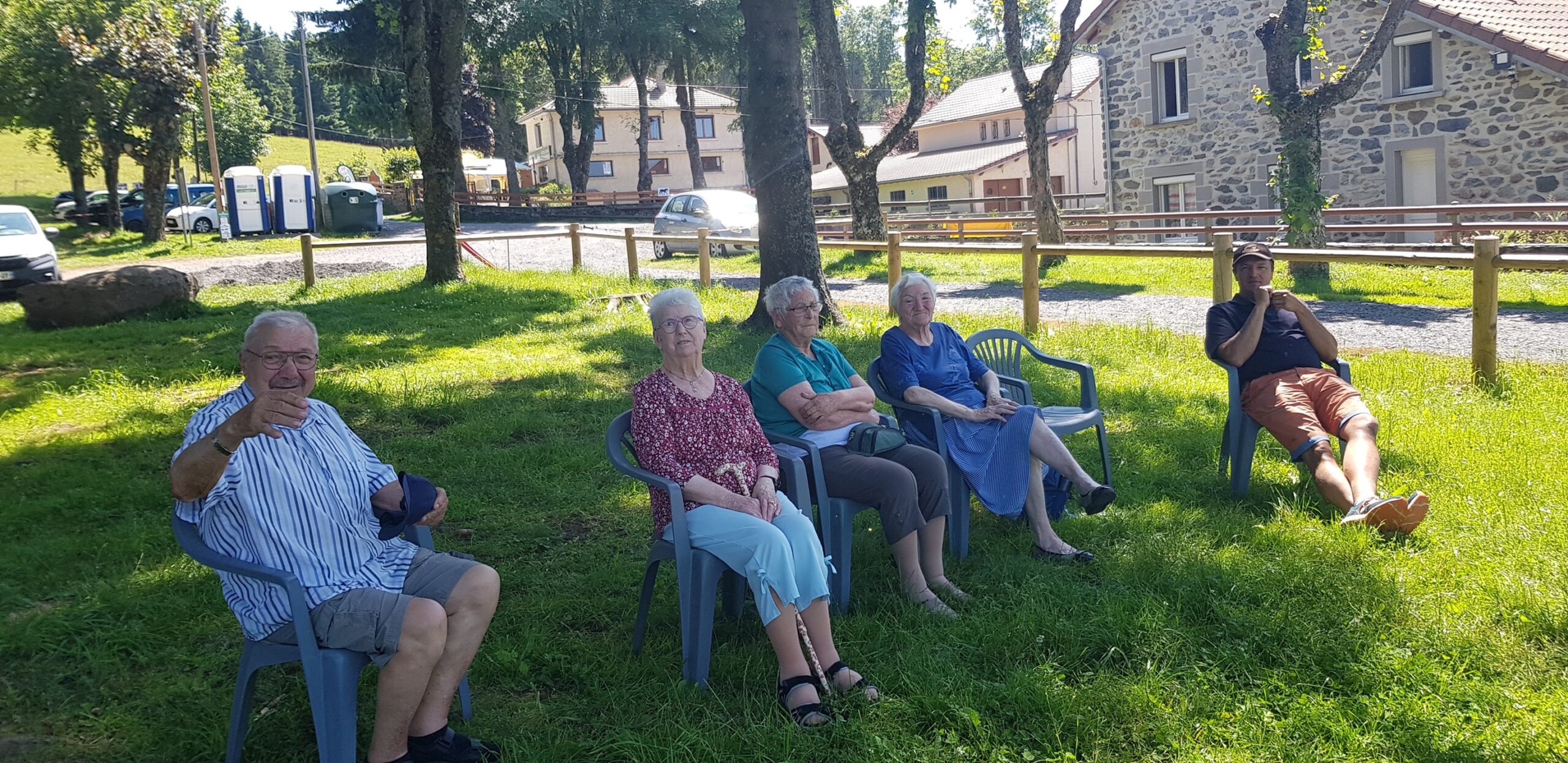 Equipé de notre mini-bus, nous avons chaussé nos chaussures de marche et embarqué nos sièges pour la proximité de l’eau du lac de Saint-Front. L’altitude a quand même des bienfaits d’apaisement! A l’ombre sous les pins nous avons observé les enfants barboter dans l’eau fraiche et les pêcheurs taquinant les truites, tout en écoutant le concert offert par les grenouilles…